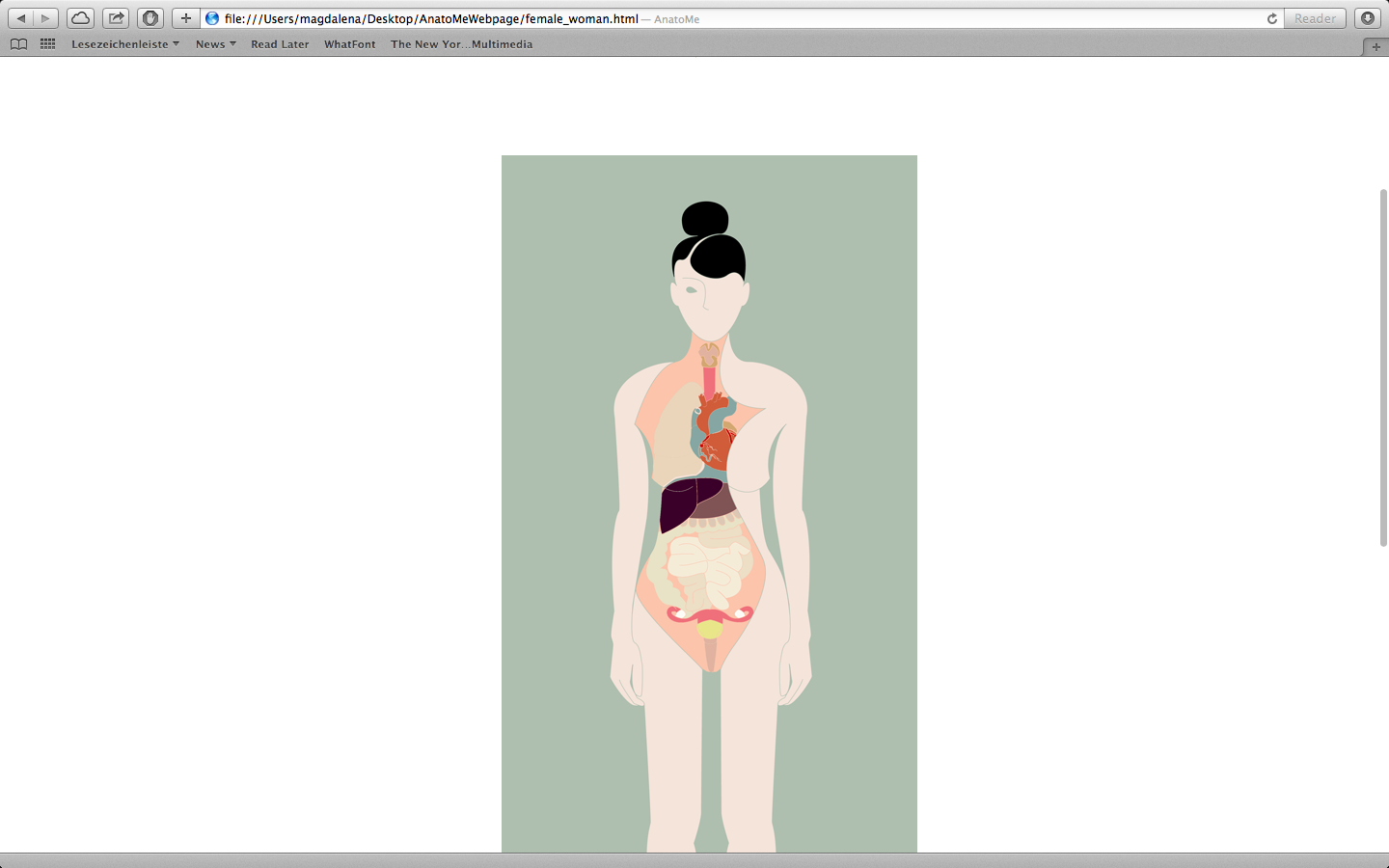 „AnatoMe“ ist ein Programm / eine Applikation zur illustrativen Darstellung der morphologisch fassbaren, krankhaften Veränderung der menschlichen Organe. Das Programm ist in HTML, CSS und PHP geschrieben, die Gliederung und Aufteilung des Programms, so wie die einfache Steuerung durch Selektion sind an den Grundaufbau einer Webseite angelehnt – da ich mir die Möglichkeit einer Webpressentation offen halten wollte.